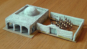 Here's a little compound with some light hoplites (Magister Militum) marching about in it. And here's a close-up of the gate which as you can see looks a little the worse for wear (again painted with emulsion from a tester pot).